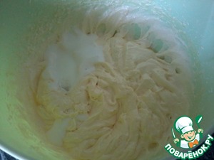 Продолжая взбивать, добавить мягкое сливочное масло.
