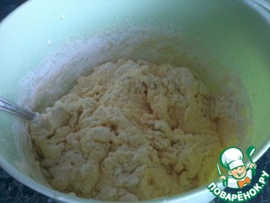 Затем добавляем просеянную муку и быстро замешиваем тесто.