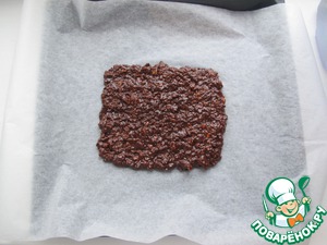 Всю шоколадную смесь выложить на бумагу для выпечки.
