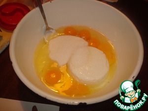 • Кладём яйца, сахар, соду, соль и хорошо перемешиваем.