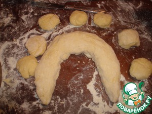 Из теста формируем колбаски, мелко их режем и формируем кругляшки.