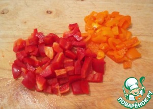 - Перец болгарский (у меня по половине красного и оранжевого) — 1 шт