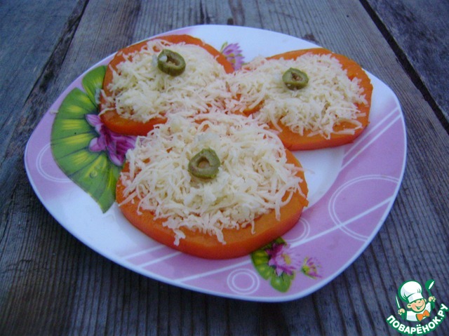 Некоторым нравится сначала намазать помидорки майонезом, а уж потом сыпать сыр. Я так не делаю, но так тоже вкусно. -