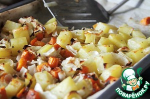 высыпать овощи и отправить в духовку при средней температуре примерно на 15 минут, ориентируйтесь по вашей духовке, проще говоря пробуйте!