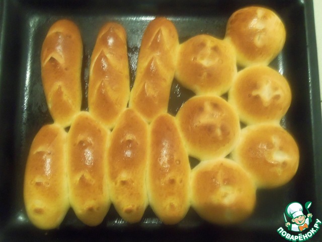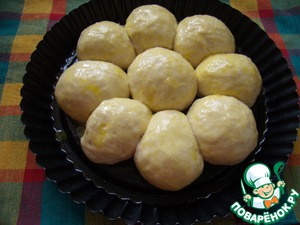 Разделать на небольшие булочки и дать расстояться, минут 15-20.