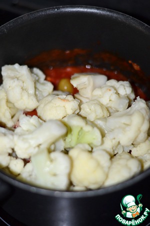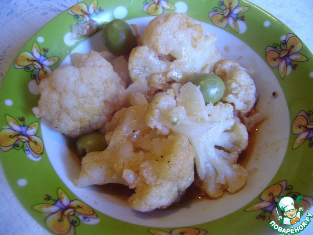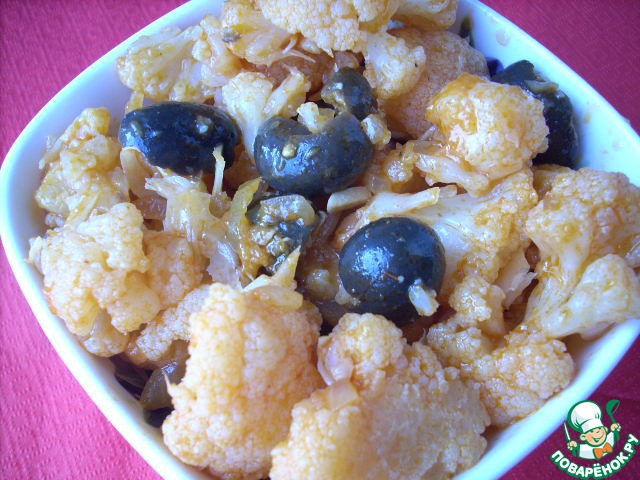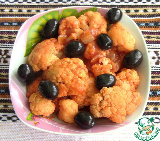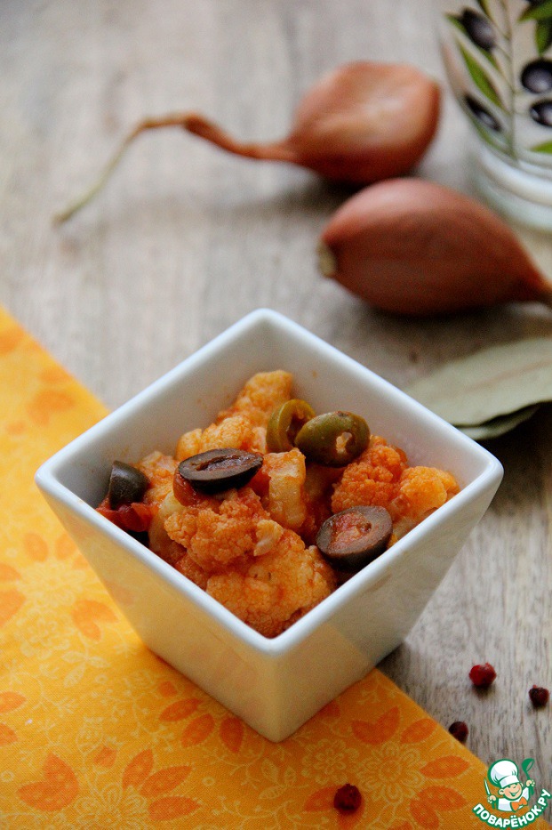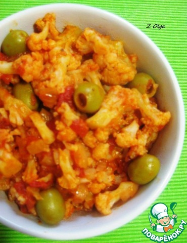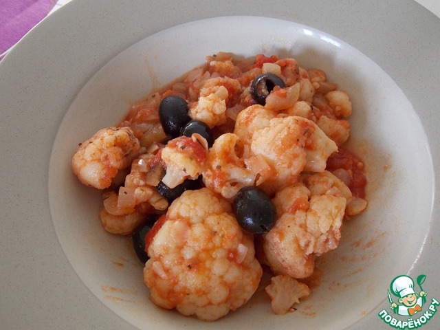 Рецепт «Цветная капуста с оливками в томатном соусе»: