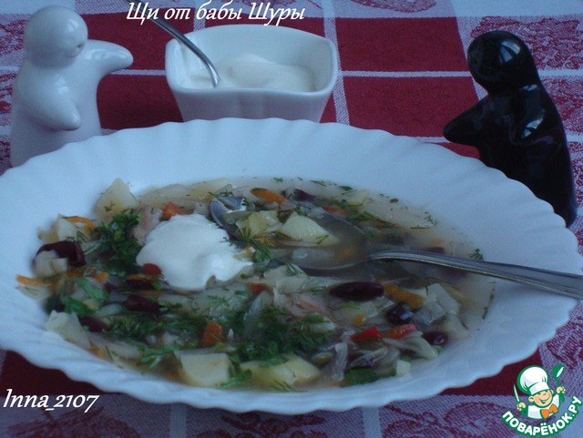 Капусту заливаем водой, чтоб только покрыла. Ставим ее на маленький огонек, пусть поварится минут 20 - 30. Вообще такой капусты у нас в городе не продают. Я ее или сама делаю или покупаю у бабушек в деревне. Такие щи получаются только из зеленой капусты. Если найдете ее - повезло. Нет - не поленитесь, сделайте сами. Труда не много, а удовольствия зимой несказанное. Этот рецепт, судя по всему, в вариациях существует еще с царя гороха и со временем становится только ценней.