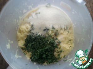 5. Добавить соль, чеснок, зелень. Все хорошо перемешать.