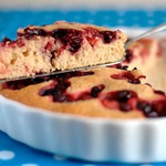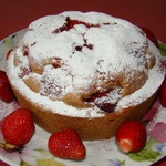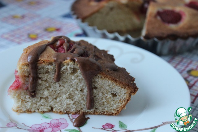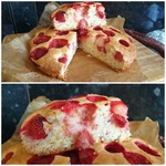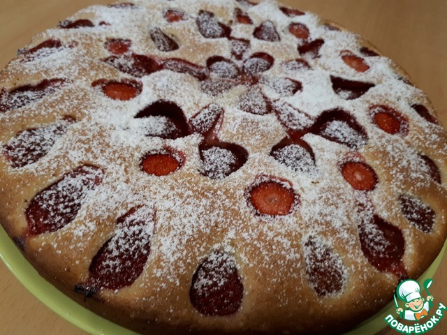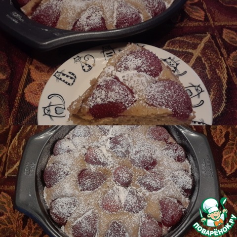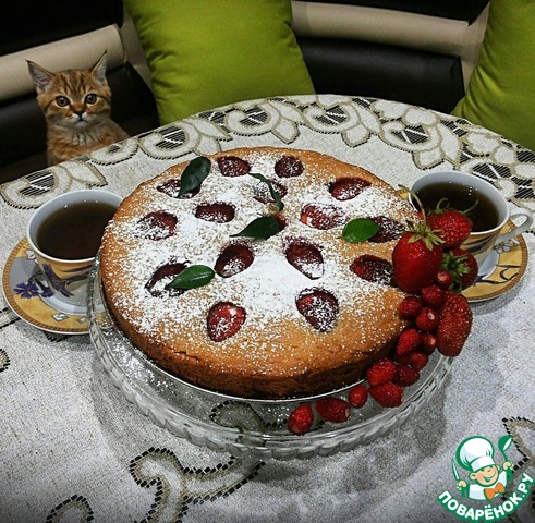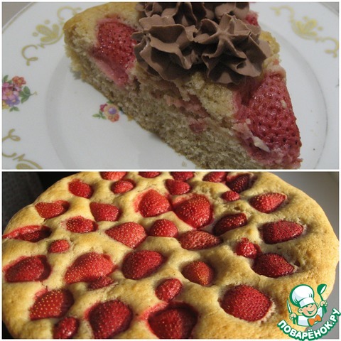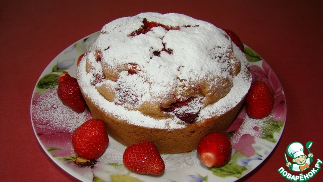 Добавлю только, что использовала замороженную клубнику (без предварительного размораживания), и форму 20см, поэтому вышел, скорее, пушистый пирог))) И - да, шапка взбитых сливок или шарик мороженого тут прям нужны