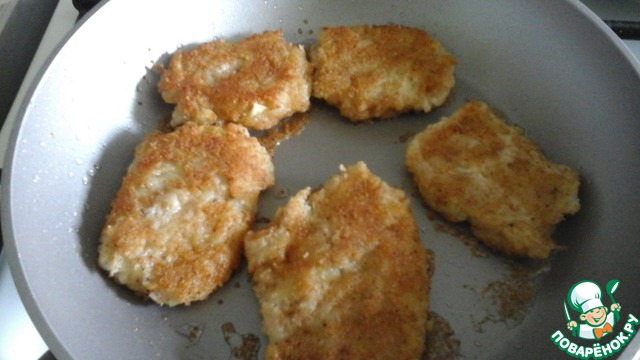 • Обваливаем их в сухарях и обжариваем по 5 минут с каждой стороны на масле растительном.