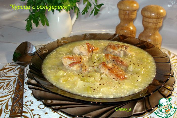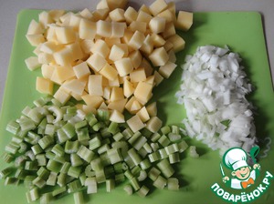 Шинкуем лук. Картофель нарезаем кубиками, сельдерей - не очень мелко.