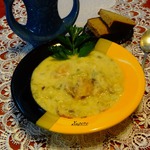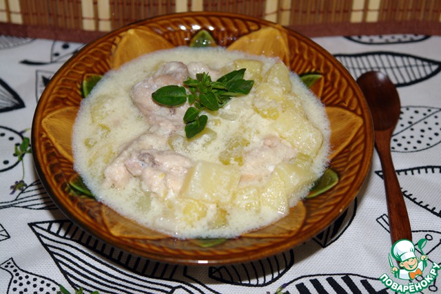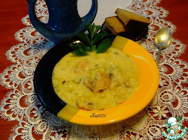 Немного необычное для нас блюдо. Я бы определила его в категорию густых супов. Он очень легкий, ароматный, с небольшой кислинкой. Сытное блюдо, но не тяжелое. Без сомнения, такой суп понравится очень многим.