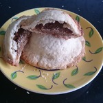 • С помощью кондитерского мешка, нанести начинку ближе к краю лепешки. Величина начинки - с грецкий орех.