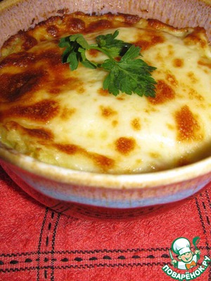 Картофельную массу выложить в жаропрочные формочки (у меня их вышло 2, но больших). Сверху уложить сыр и запекать на гриле 8-10 минут.