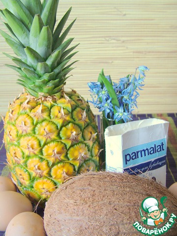 Для этого мороженого нам потребуются сливки для взбивания от Пармалат, яйца (точнее желтки), сахар, кокосовое молоко, ананас и немного кукурузного крахмала.