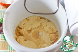 Сахар я взяла коричневый, кусковой от Мистраль, кусочки сахара положила в сок и дала немного постоять, часть сахара растворилась, а часть сахара осталась кусочками, это придало особый колорит булочкам.