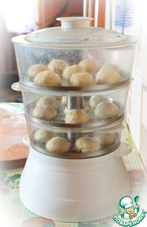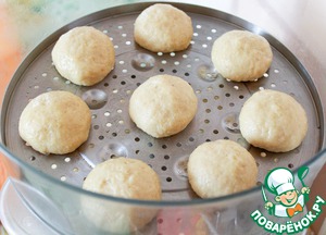 Катаем круглые булочки и укладываем в пароварку, предварительно смазанную растительным маслом. -