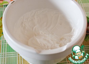 1 стакан растительных сливок для взбивания и 70 гр. сахара взбить до состояния крема.