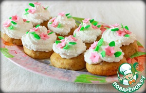 Отсадить на булочки шапочку из растительных сливок из кондитерского мешка. -