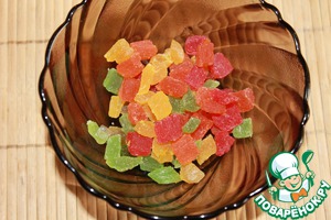 Смешать миндальную муку, сахар, пасту из цукат, апельсиновую цедру, мед.