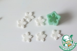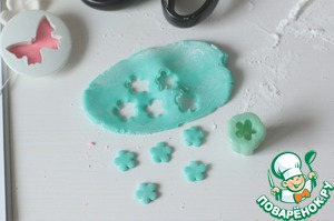 В принципе, все готово, можно подавать наши кексы к столу, но если у Вас есть немного времени, то предлагаю украсить наши кексы. Сделаем нарцисс из мастики. Нам понадобится белая мастика и форма с пятью листьями.