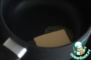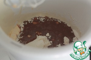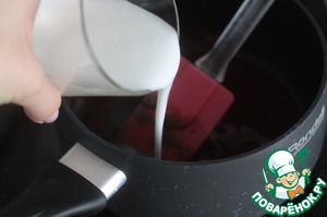 Добавим шоколад и будем размешивать до тех пор, пока шоколад не растает. Добавим кефир, соду, все перемешаем и отставим в сторону.