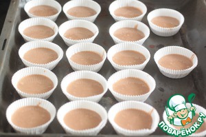 Разогреем духовку до 180 градусов. Заполним тестом формы до половины и отправим в духовку на 25 минут. В журнале было написано не в коем случае духовку не открывать. Я так и сделала :)