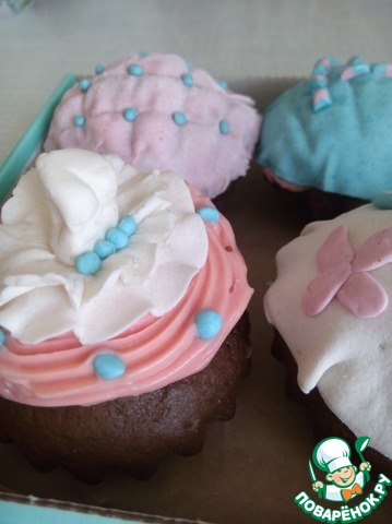 Выложить меренгу в кондитерский мешок и покрыть наши кексы.