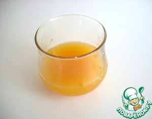 Выдавить сок из этого же апельсина, должно получиться около 100 мл. В запасе лучше иметь еще один апельсин, если сока получится не достаточно. На крайний случай, можно добавить воду.