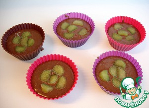 Силиконовые или бумажные (но не железные) формочки заполнить на 2/3. Сверху кладем по 4-5 кубиков ревеня. Выпекать при 180 гр. 25-30 минут. Готовность можно проверить лучиной.
