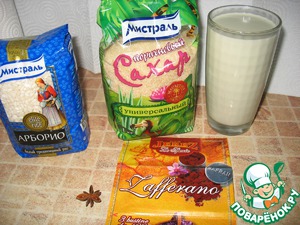 Залить рис тыквенным молоком (рецепт этого молока я выставляла ранее), добавить звездочку бадьяна (анис звездчатый), сахар, растворить в 1 ст. л. шафран и добавить в молоко.