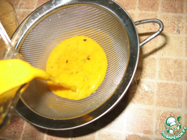 Снять с огня, пюрировать, процедить через мелкое сито.