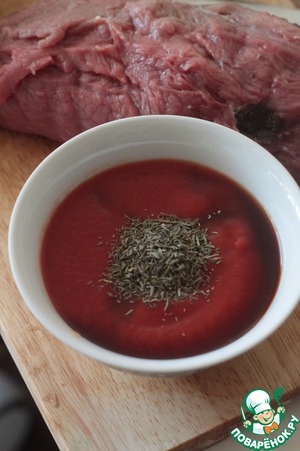 Приготовим соус - соединим томатную пасту, табаско, соевый соус и тимьян.