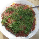Подавать с томатным соусом (у меня домашний соус с чесноком и болгарским перцем). Посыпаем зеленью.