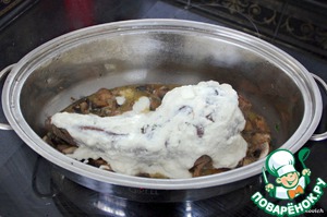 Рецепт «Фаршированный язык в сметанно-хреново-грибном соусе»: