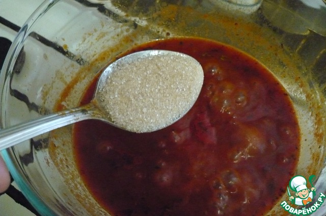 • Теперь кладем сахар и соль (ориентируемся на ваш вкус) и варим еще 5 минут.