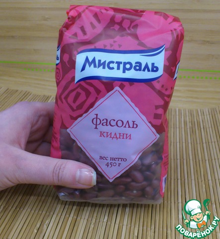 Берем 100 гр. фасоли ТМ "Мистраль", замачиваем ночь, чтобы она быстрее сварилась.