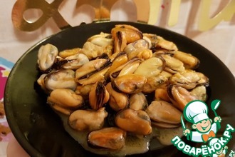 Подготовленный соус вылить к мидиям и обжарить все вместе еще минут 5 до загустения.