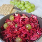 А это салат на второй день, он уже окрасился соком свеклы, немного промариновался и стал еще вкуснее и аппетитнее.