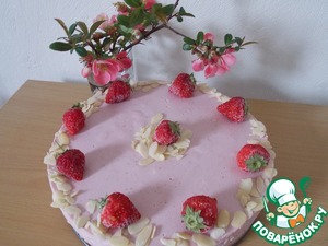 У меня со словом "барышня" ассоциируется все легкое и воздушное, ну, знаете, этакая девушка, одетая в тонкие кружева. Так и этот тортик, как барышня, представляет собой нежный мусс в сочетании с легким бисквитом. А Вкус при этом получился - почти как клубничное мороженое!