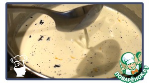 1) Добавьте в кастрюлю молоко, стручки ванили с семенами, цедру лимона и половину сливок (то есть примерно 187 мл).