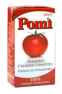 На этом этапе нам понадобятся протертые томаты. Я взяла Поми от Пармалат, если у вас такого продукта не оказалось, то протираем через сито помидорки