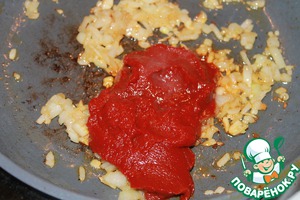 Добавляем протертые помидоры к луку и тушим 5 минут