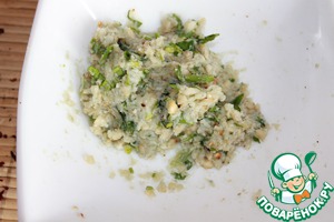 Мелиссу порубить, смешать молотый фундук, мелиссу и козий сыр.