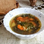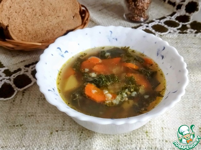 Описание: Воскресным утром, копаясь в огороде, с мужем решили покушать что-нибудь на обед легкого и полезного. Собрали в огороде зелень, петрушку, лук, крапиву и приготовили вкусный и очень полезный обед, который съели на свежем воздухе во дворе дома. Это очень вкусный и полезный суп, ведь в гречке содержится много белка и совсем мало углеводов, от которых мы и поправляемся. Также гречка богата аминокислотами, железом, витаминами. Это витамины В1, В2, В6, РР, Р, рутин. Хорошо усваиваются в организме содержащиеся в гречке минеральные вещества: йод, соли, кальций, фосфор, щавелевая кислота. Крупа прекрасно помогает снизить уровень холестерина. А крапива - ценное поливитаминное растение, своеобразный природный концентрат витаминов. Аскорбиновой кислоты в ней вдвое больше, чем в плодах черной смородины и лимоне, содержание каротина выше, чем в ягодах облепихи, моркови и щавеле, а всего лишь 20 листьев крапивы обеспечивают наш организм суточной нормой витамина А. Помимо этого, крапива богата витаминами К, Е и В и микроэлементами: среди которых железо, магний, медь, кальций и др. Крапива позволяет восстановить функции жизненно важных органов и нормализовать работу организма в целом. Крапива содержит секретин, который нормализует обмен веществ, стимулирует образование инсулина и тем самым ведет к снижению количества сахара в крови, что безусловно необходимо людям, страдающим сахарным диабетом.