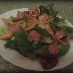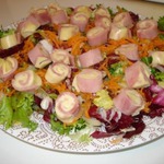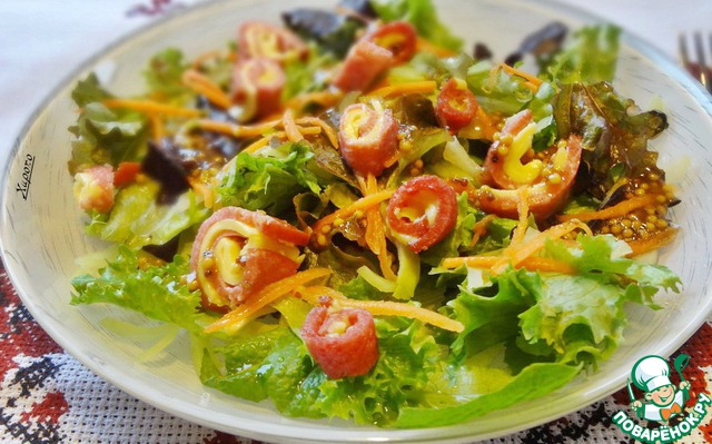 Рецепт «Салатный микс с рулетиками из салями с сыром»:
