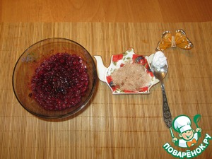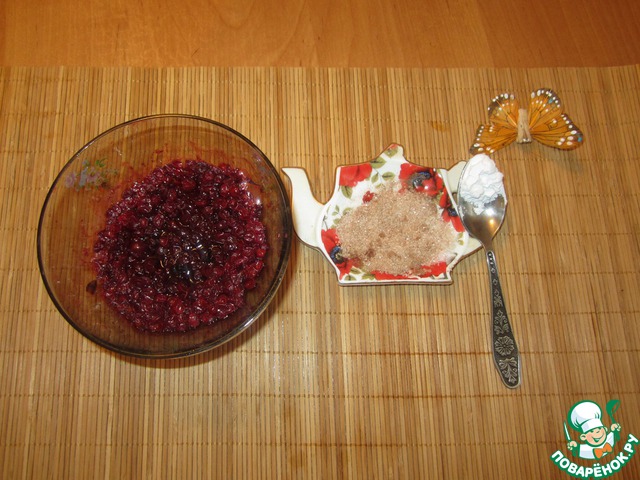 • Для приготовления сиропа мне понадобится брусника (100г), 2 ст. л. коричневого сахара и 1/2 ч. л. крахмала.