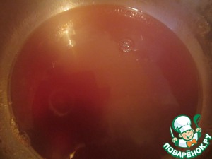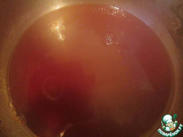 • Добавить в нее 2 ст. л. коричневого сахара, довести до кипения и влить крахмал, растворенный в 1 ст. л. воды., перемешать и поварить еще 1 мин. (чтобы кипело), помешивая. Чуть остудить.