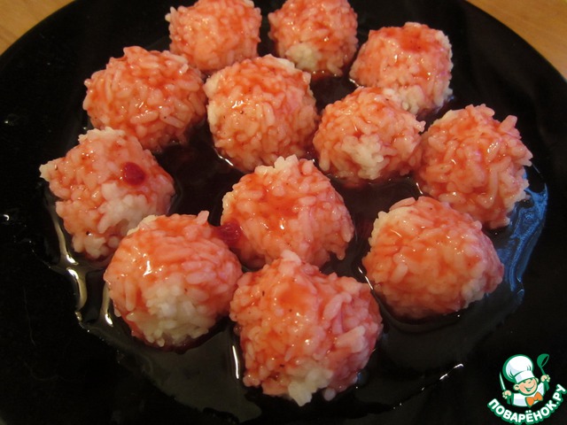 • Полить рисовые шарики сиропом.