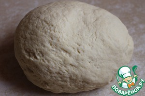 Вольем дрожжи в мучную смесь и замесим тесто. Оно будет очень гладкое и податливое. Поставим его подниматься на час в теплое место, обязательно надо его накрыть чистым полотенцем.